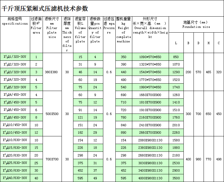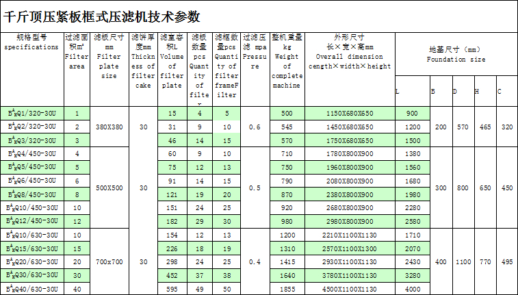 千斤頂壓緊壓濾機是采用螺旋千斤頂作為壓緊裝置,具有結構簡單、操作方便、無需電源、經(jīng)濟實用的特點,一般用于過濾面積1~40m2的壓濾機。