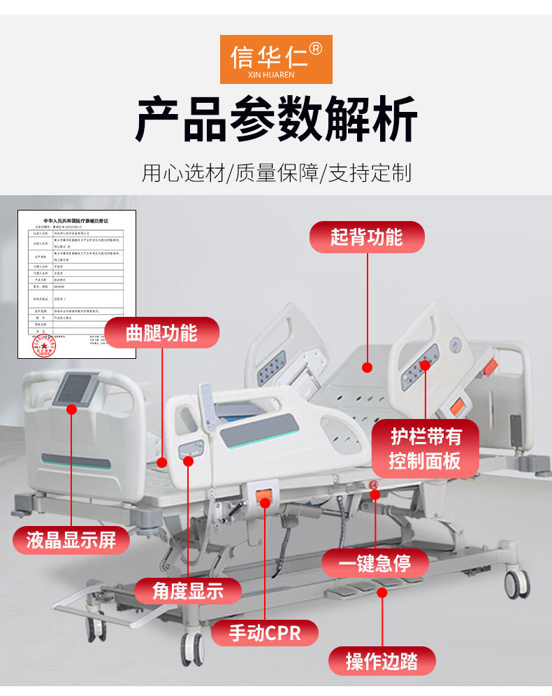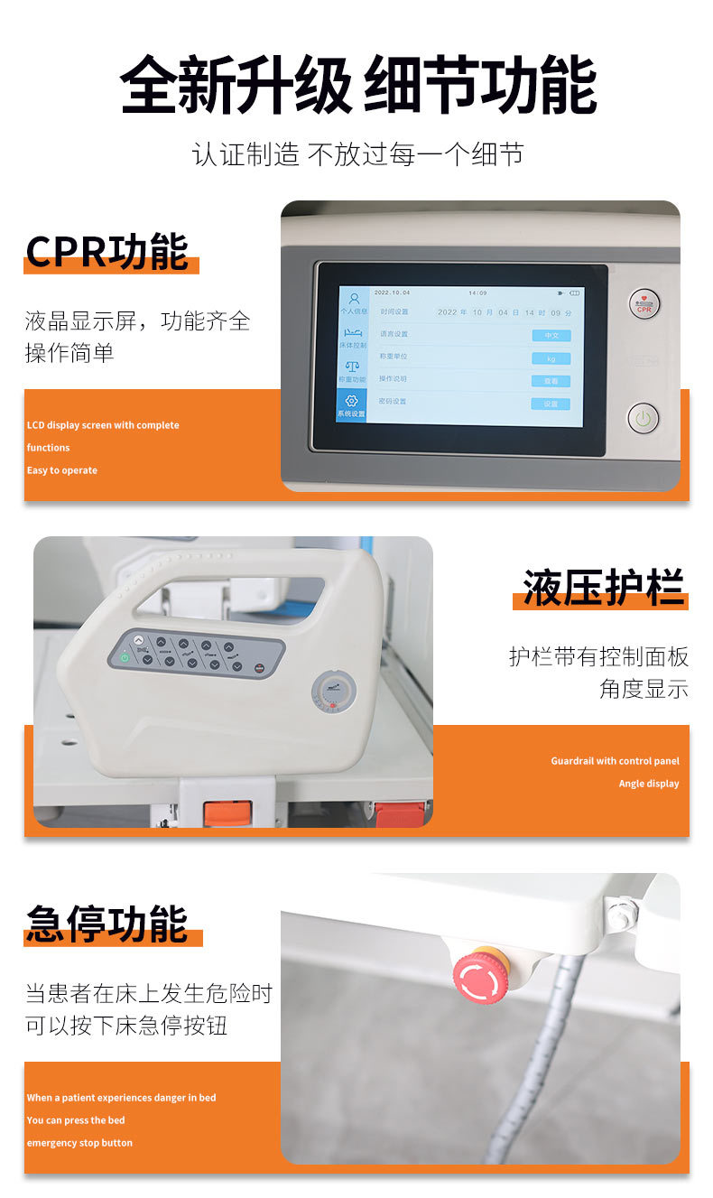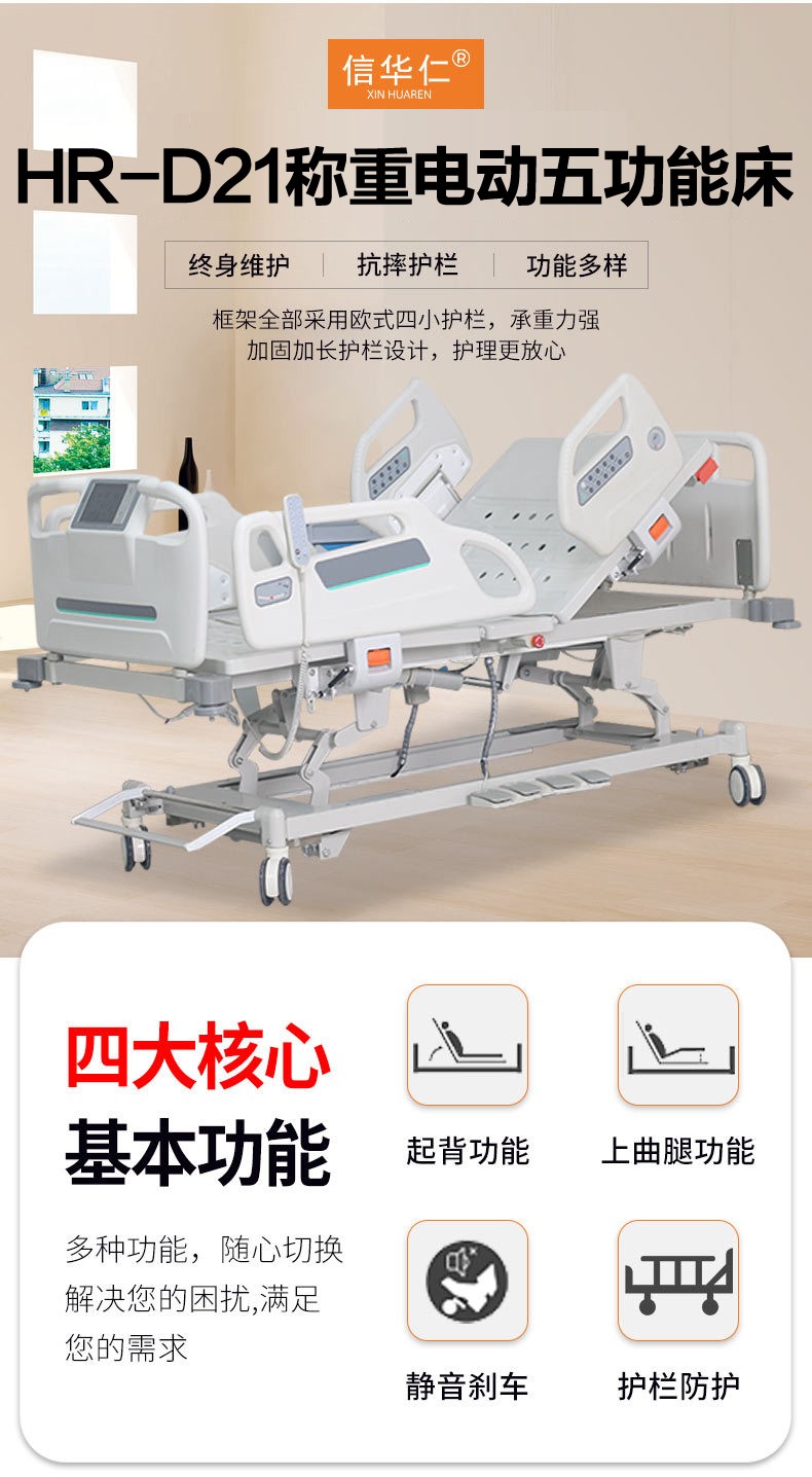 產(chǎn)品中心 > 醫(yī)用手動病床系列 > HR-D21稱重電動五功能床