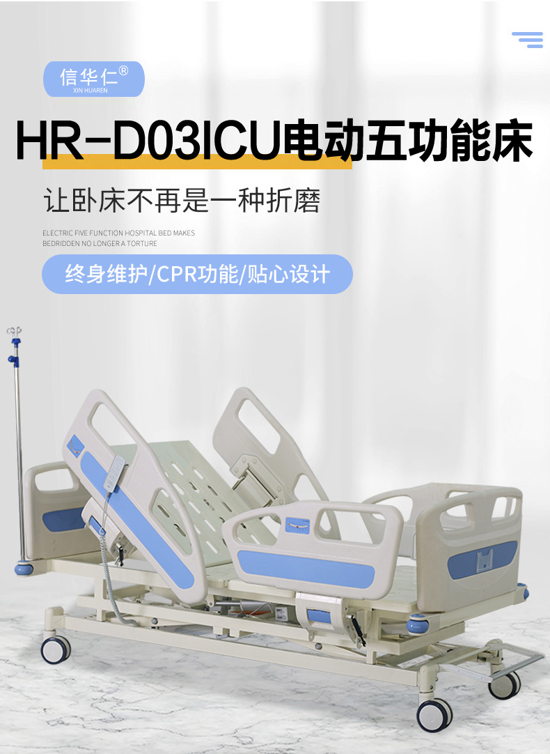 產(chǎn)品中心 > 醫(yī)用手動(dòng)病床系列 > HR-D03ICU電動(dòng)五功能床
