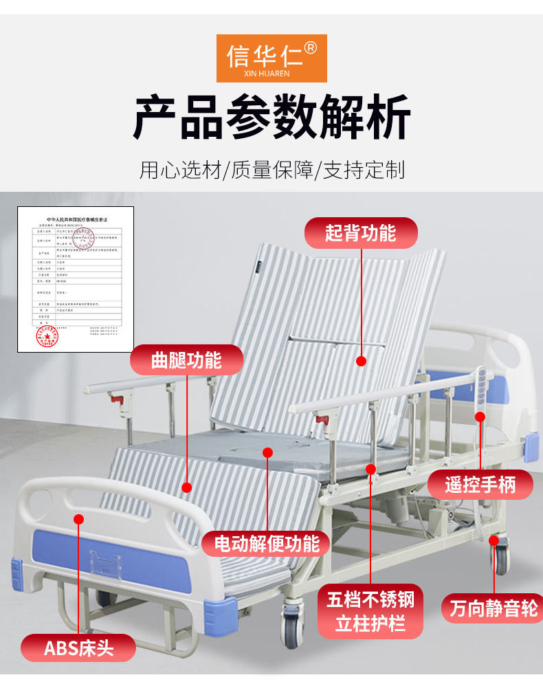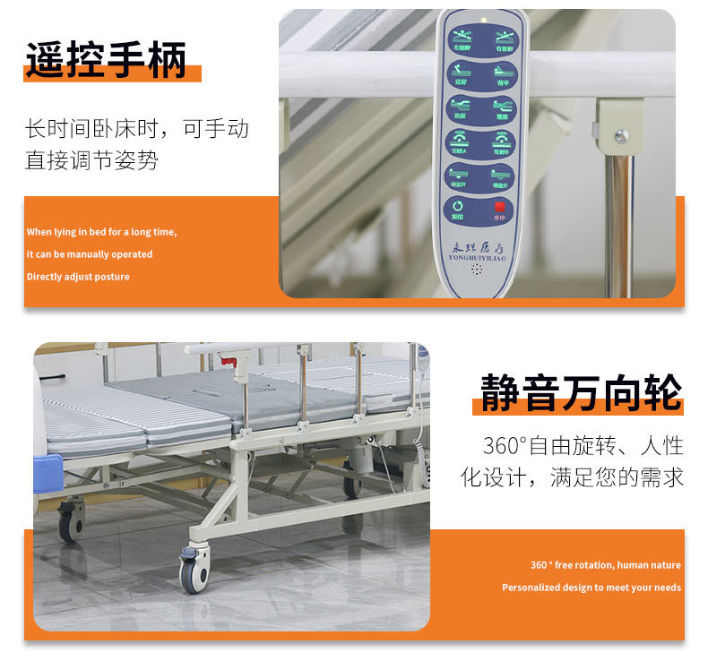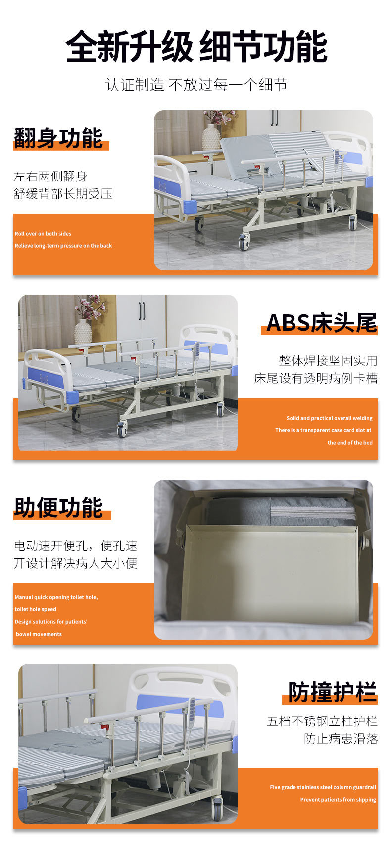 標(biāo)準(zhǔn)配置:ABS床頭1副;鋁合金折疊護(hù)欄1副;靜音輪4個(gè);