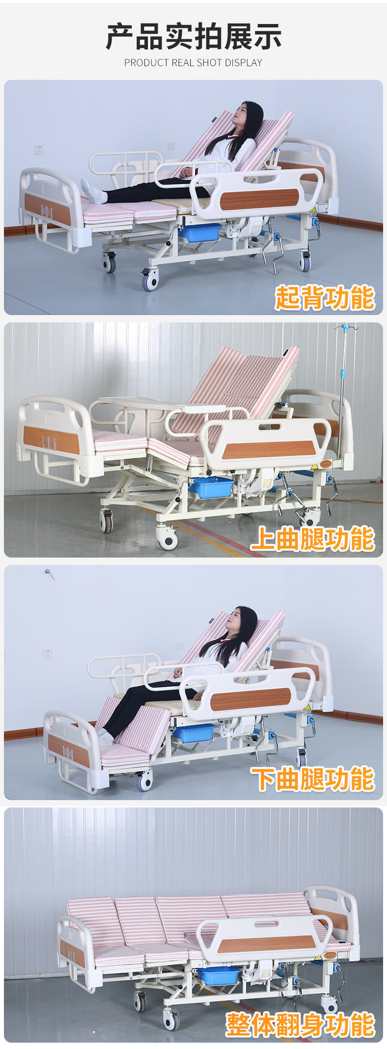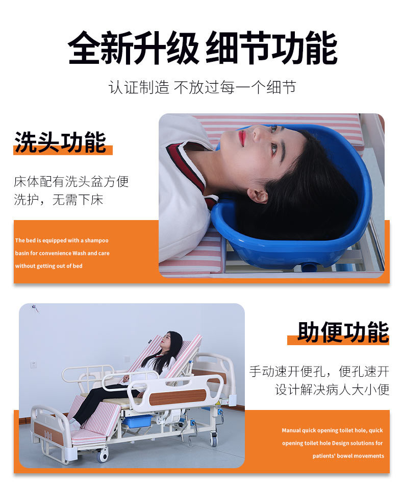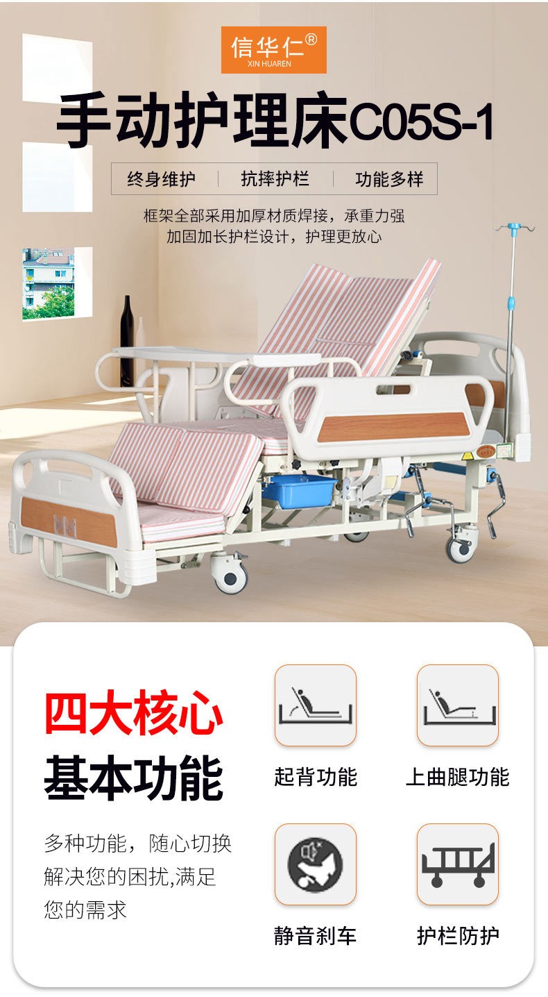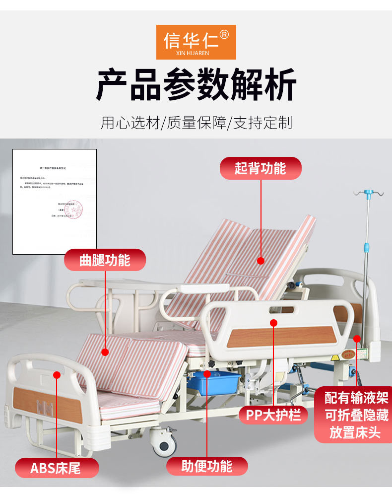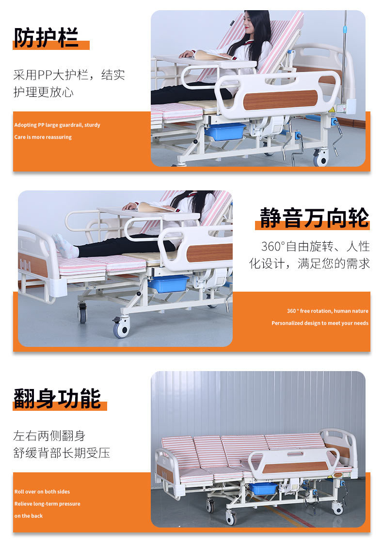 標準配置:ABS床頭1副;PP護欄1副;靜音輪4個;輸液架1支;